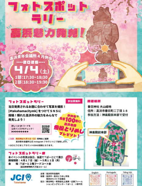 高浜市には、日々の暮らしの中では気づきにくい“まちの魅力”が数多く息づいています。忙しさのあまり立ち止まる時間がない方にも、改めてこのまちの良さを感じていただきたい——その思いから、春日神社を舞台に「フォトスポットラリー」を開催いたします。主催:高浜青年会議所