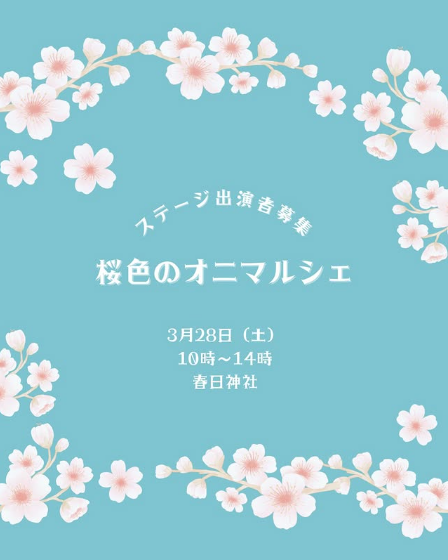桜が色づく境内で、春のお楽しみ「桜色のオニマルシェ」を開催します。