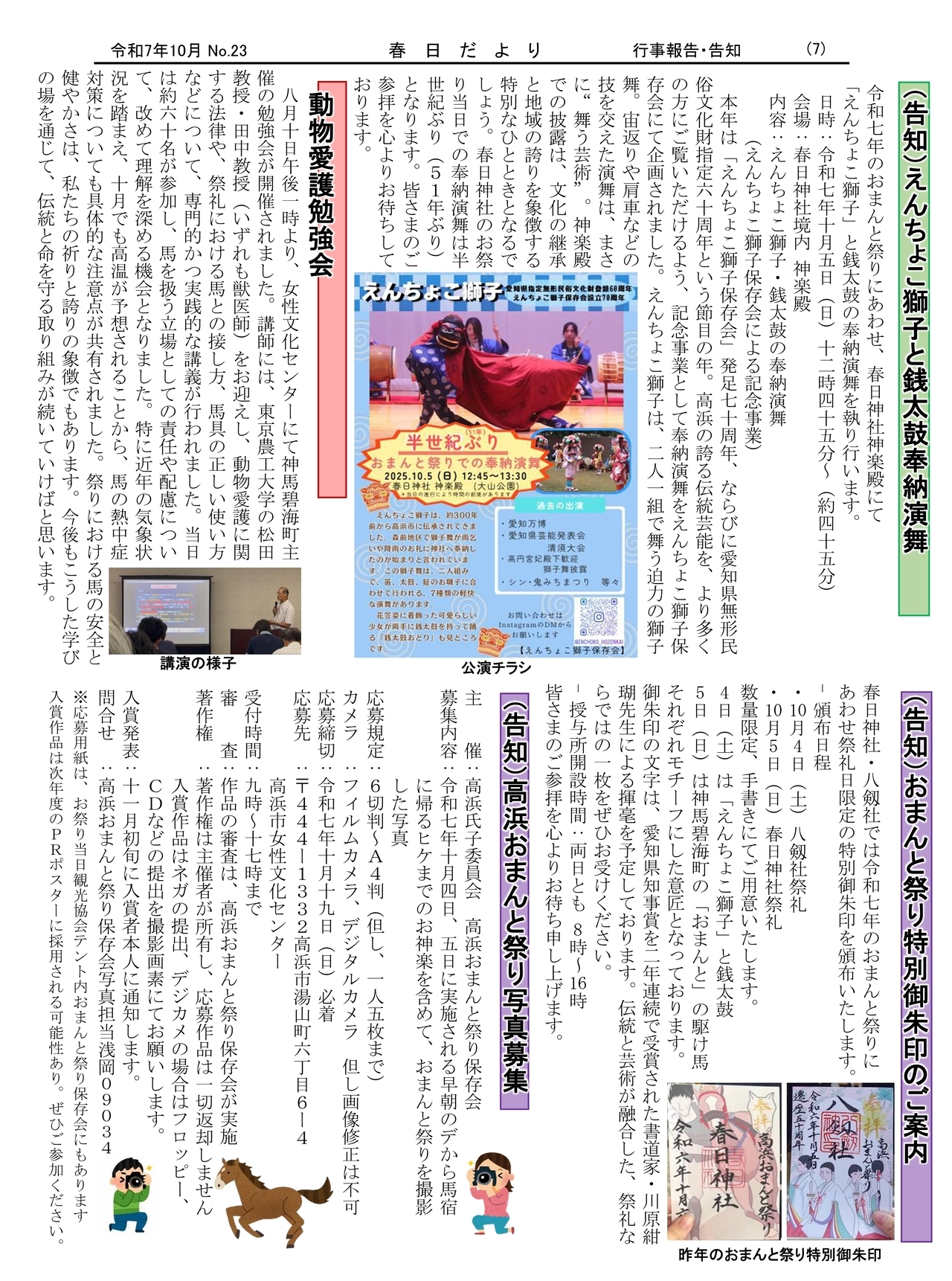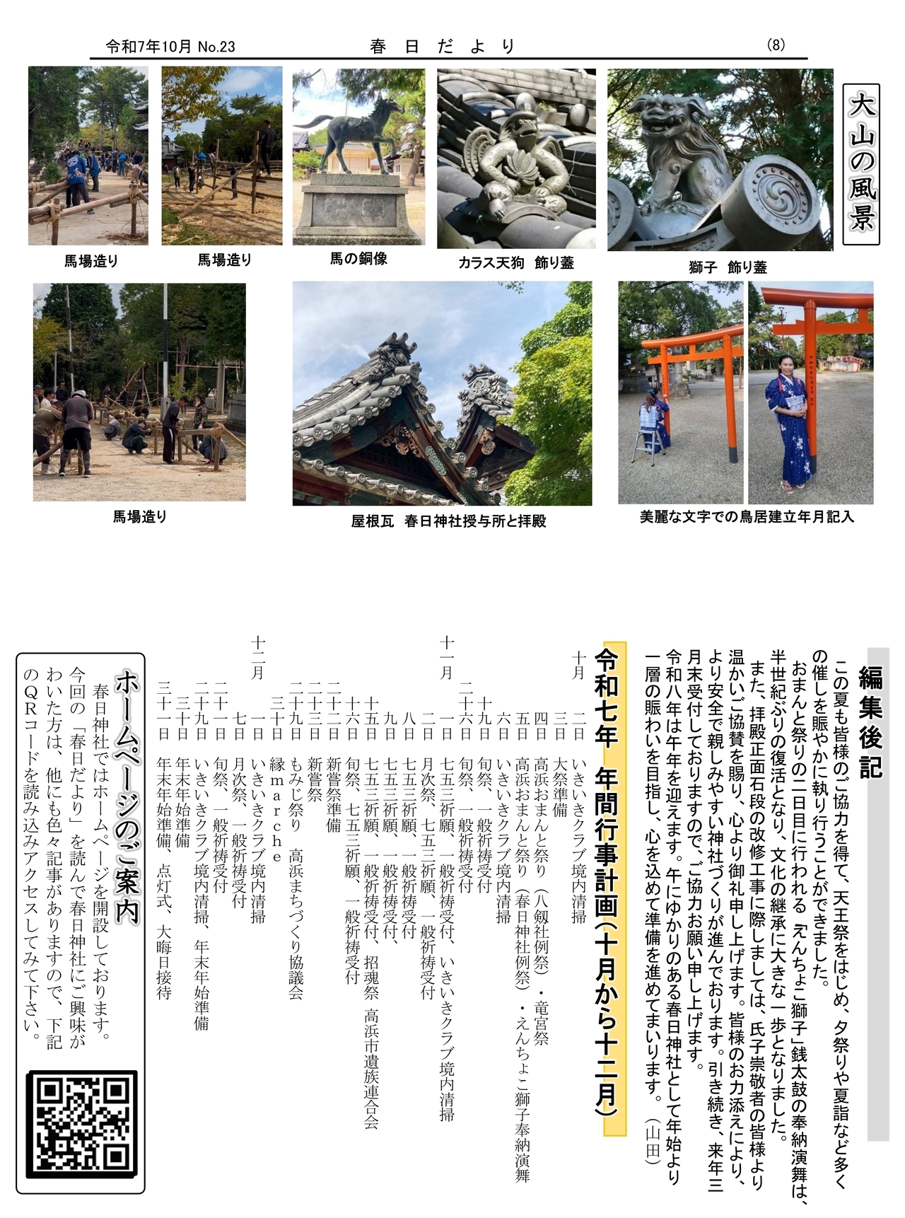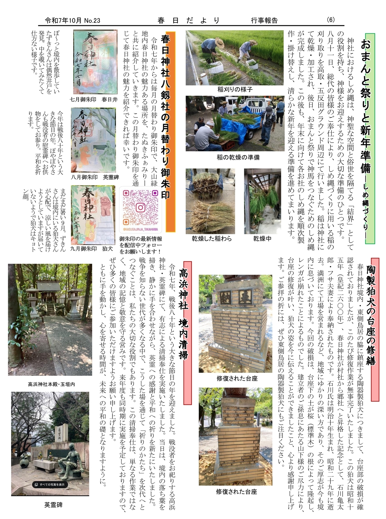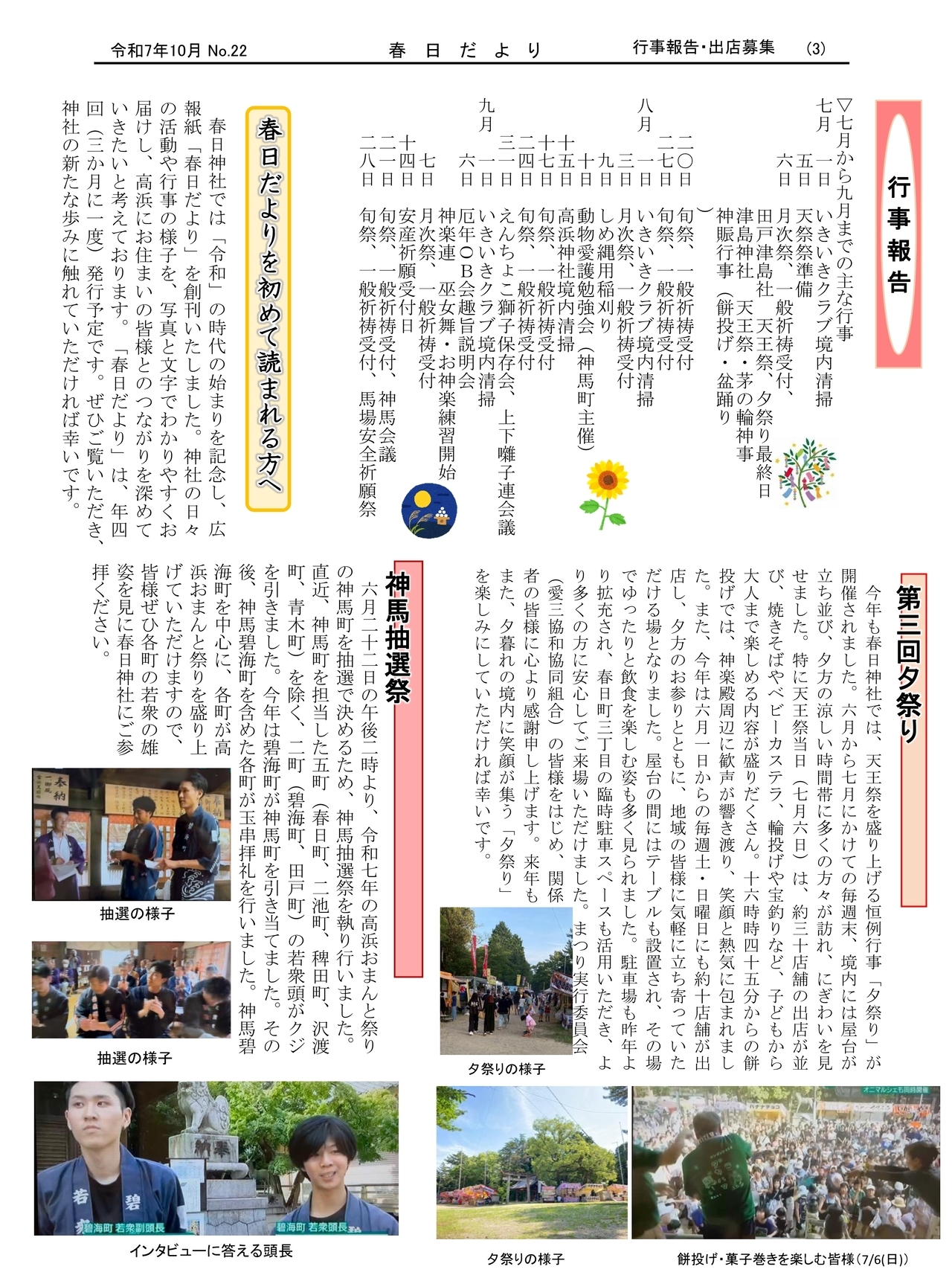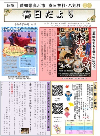 春日神社での活動を紹介する「春日だより」を作成しましたので、掲載致します。